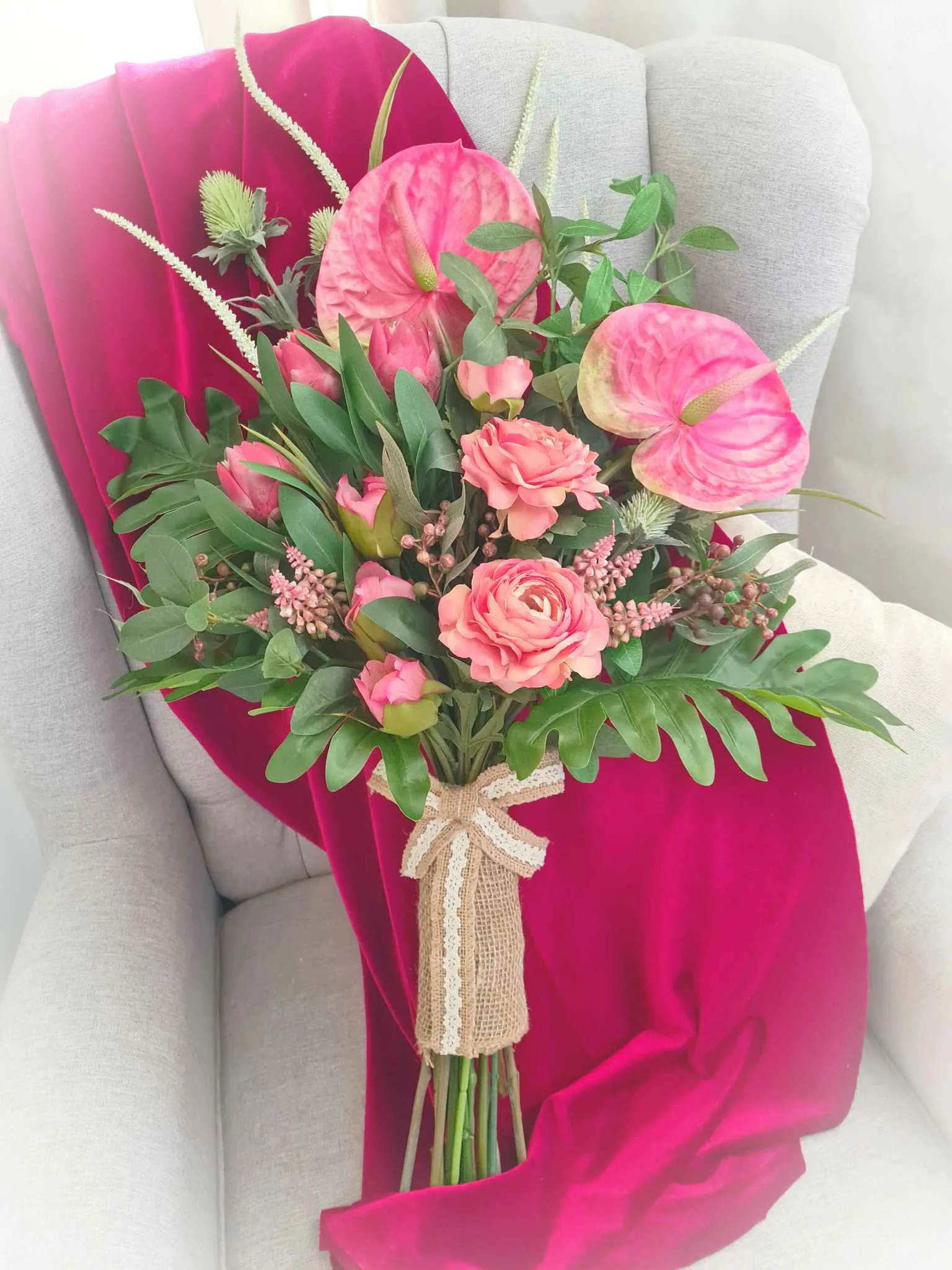 Our bespoke floral creations are all handmade with immense passion, creativity, flair, love and care at our studio in Brisbane. We create unique and stunning floral designs using beautiful faux flowers and foliage for you to enjoy timelessly!